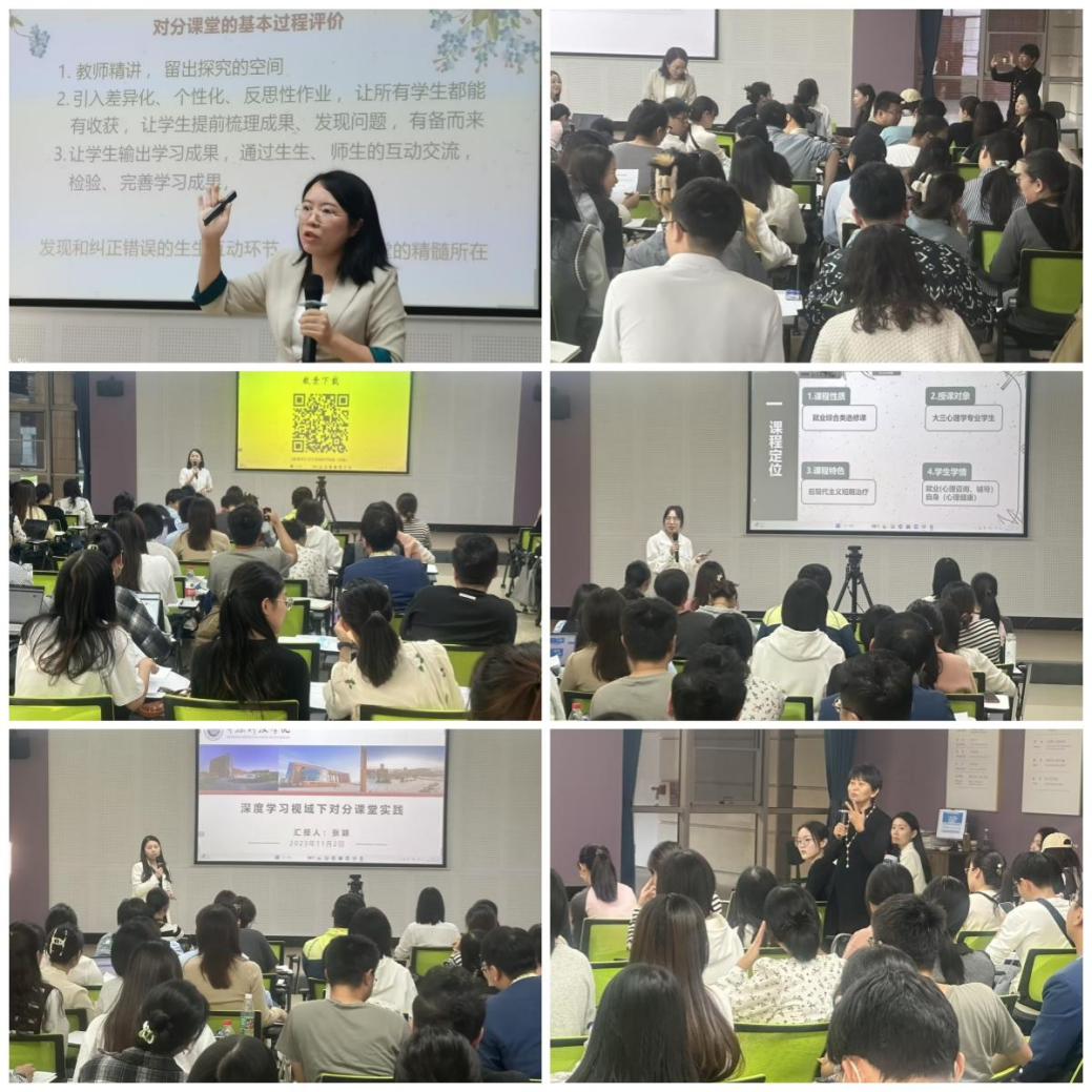 李向玲以“对分课堂”的形式开展讲授。在精讲环节,从理论和实践两个方面解读了对分课堂的理念、特点和实施策略;在独学、讨论环节,以“您获得了哪些信息?有什么不同的思考?还有哪些疑惑?”等问题作为切入点,培训同时邀请张颖、冯文靖、刘盼婷三位老师分享自己的“对分课堂”案例。在90分钟时间内开展两轮对分演练,司莉教授也在交流环节分享了自己的对分教学经验。通过此次培训,参训老师加深了对“对分教学”精讲-独学-讨论-分享四个环节的理解和认识。